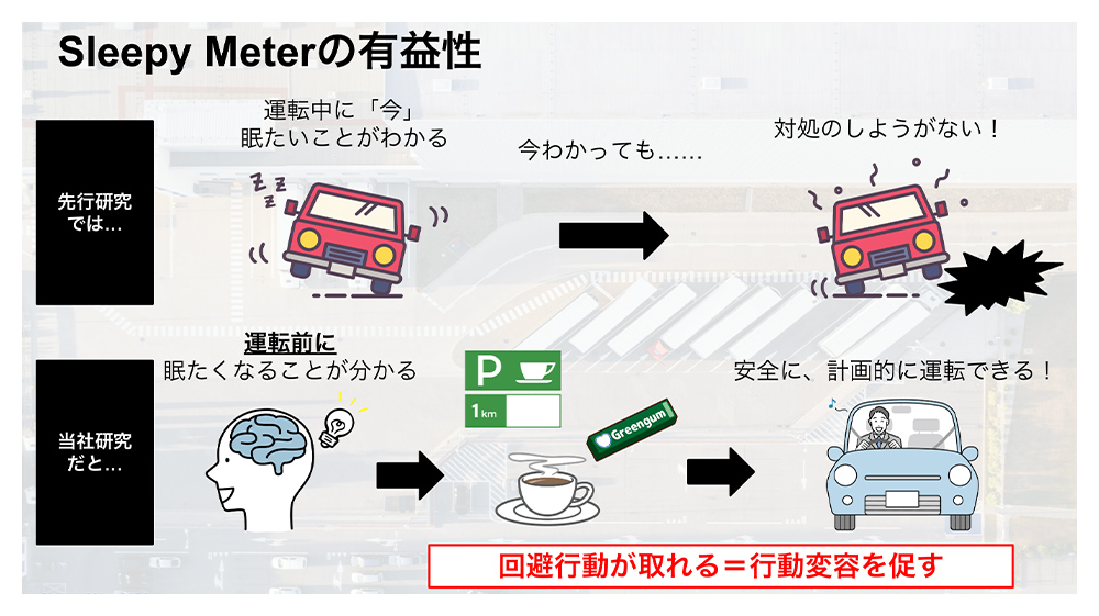 2024年には首都高速道路株式会社による「首都高 Open Innovation Challenge 2024」に採択され、2025年3月には、横浜市の首都高・大黒パーキングエリアでドライバーの眠気を推定する実証実験を行いました。