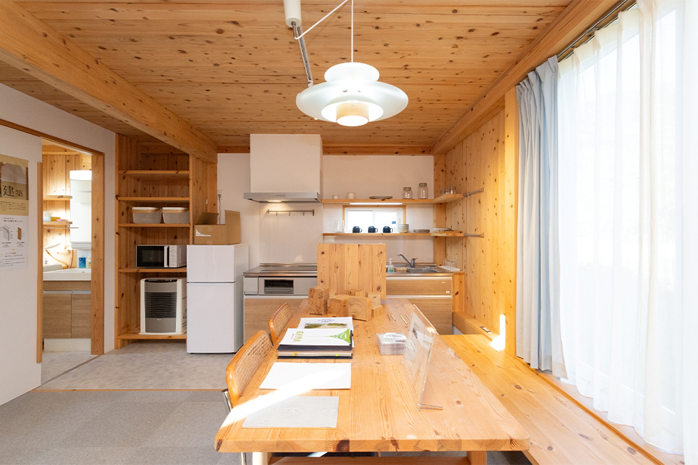 タテログ構法、断熱セラミック塗材「GAINA」が塗装されたモデルハウス。宿泊体験も可能。
