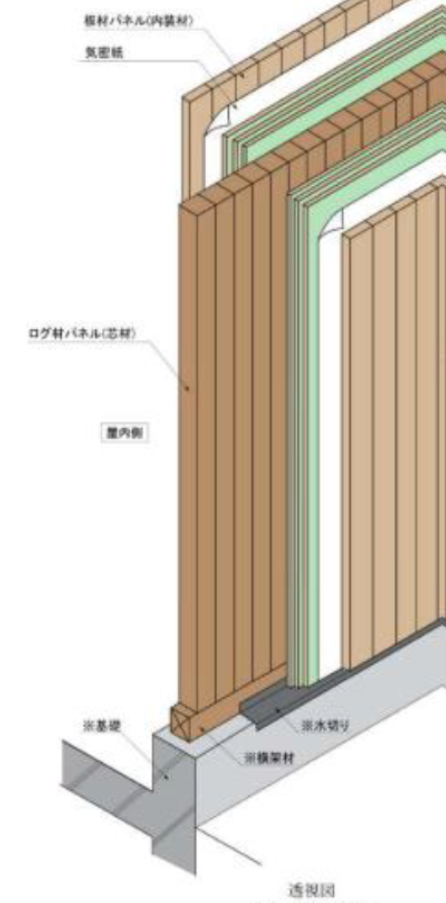 いわゆるログハウスは木材を横積みしますが、「タテログ」は国産無垢材を一定の大きさに切り揃えて縦に並べ、木質構造用ねじ(ビス)で緊結してパネル状にして使用します。国土交通大臣認定の60分準耐火性能を有し、火に強いことは立証されていますので、南会津を中心に多くの施工実績があります。ただ、耐火性能にも種類があり、耐火建築物と準耐火建築物では仕様が異なるのです。
