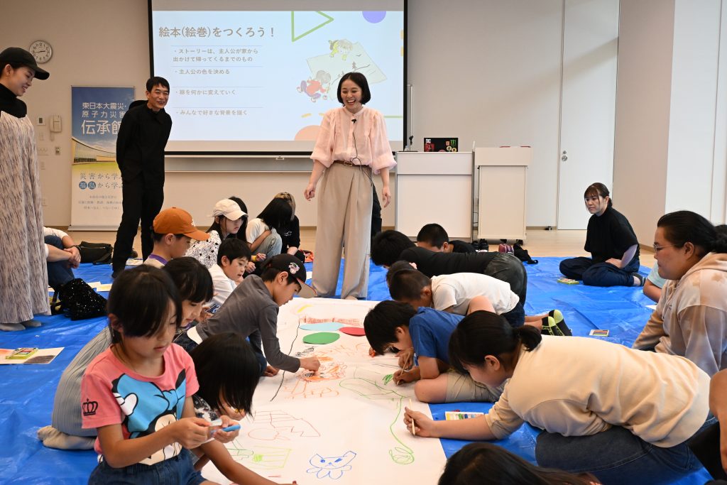 伝承館5周年イベントの一つとして、絵本作家・松本春野さんによる講演会「絵本と一緒に大人になる」とワークショップ「世界に一つだけの絵本作り」が10月4日、当館で開催されました。参加した子どもたちはクレヨンを手に、とても楽しそうに取り組んでいました。