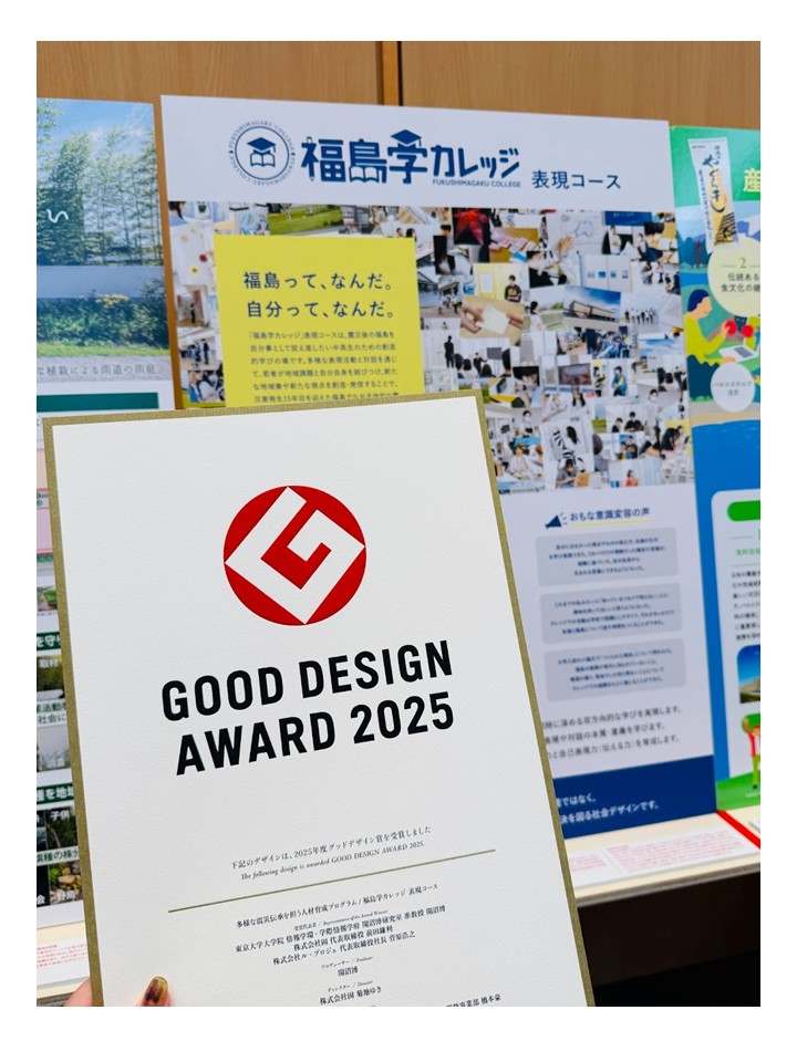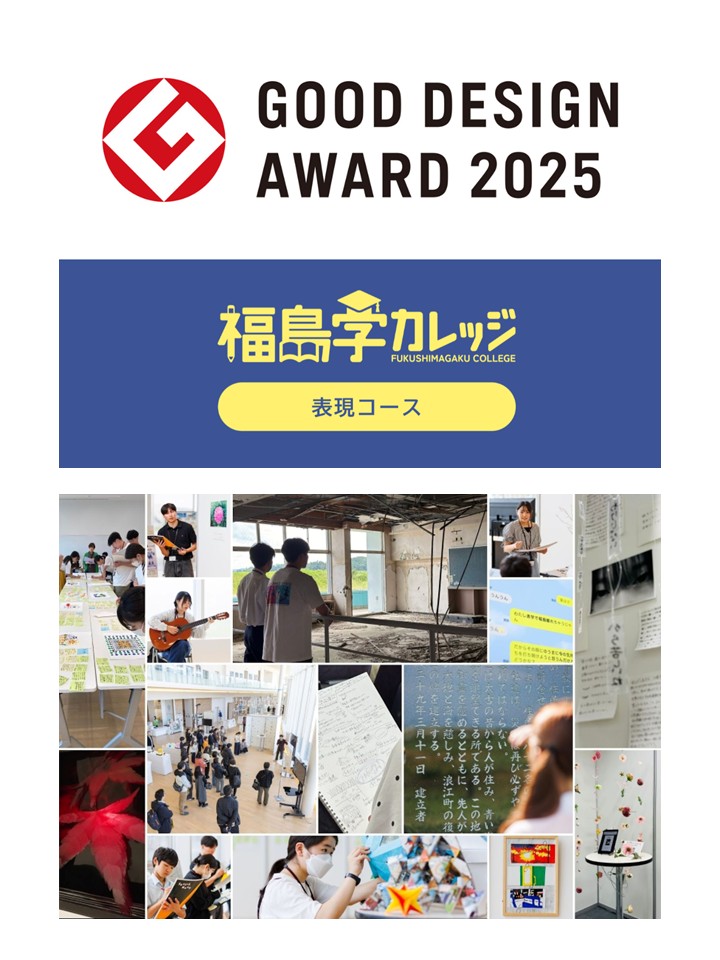 福島学カレッジ「表現コース」、グッドデザイン賞2025を受賞 2025.11.10 東日本大震災・原子力災害伝承館が共催する「福島学カレッジ」の「表現コース」が グッドデザイン賞2025を受賞しました。 詳細は下記ページをご覧ください。 探究・STEAMプログラム「福島学カレッジ」(開沼研主催)がグッドデザイン賞2025受賞 – 東京大学大学院 情報学環・学際情報学府 https://www.iii.u-tokyo.ac.jp/research/20251031report
