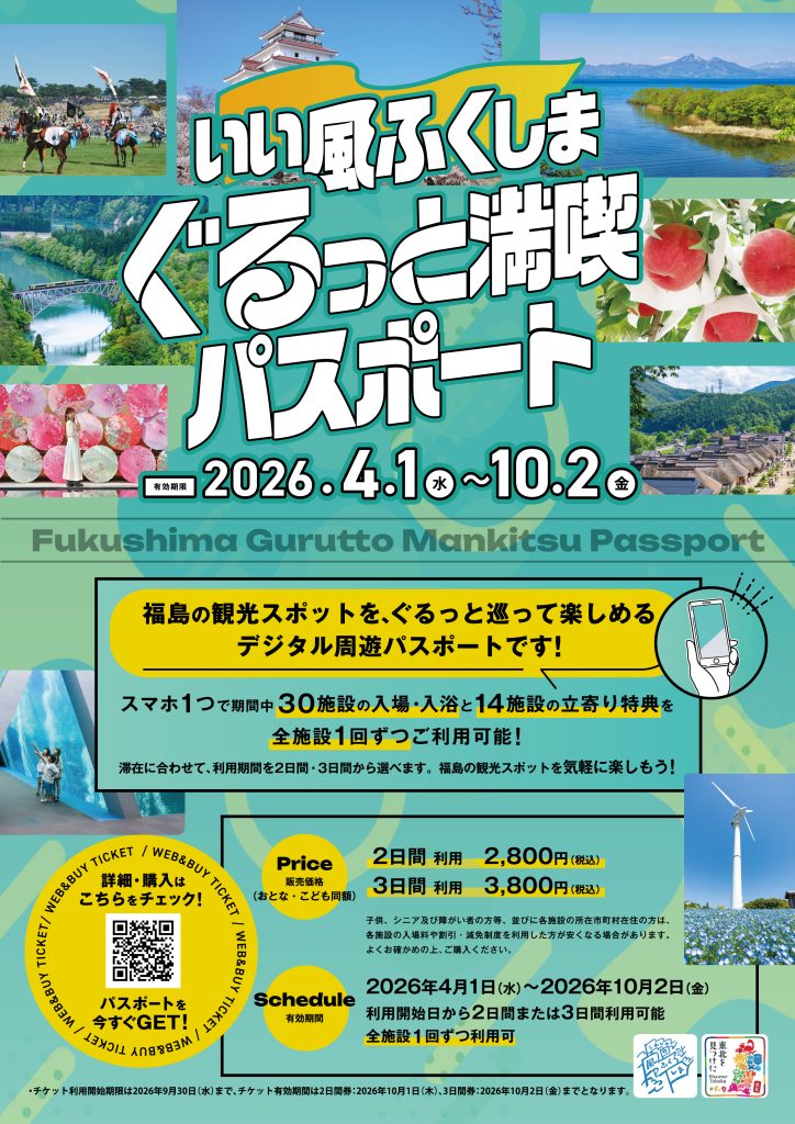 当館は福島県内の観光施設などを定額で周遊できるデジタルパスポート「いい風ふくしま ぐるっと満喫パスポート」の対象施設です。