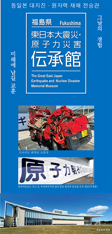 동일본 대지진・원자력 재해 전승관은 후쿠시마현 후타바마치에 자리한 현립 시설로 2020(레이와 2)년 9월 20일에 문을 열었습니다. 후쿠시마에서 일어난 지진과 쓰나미, 그리고 도쿄전력 후쿠시마 제1 원자력 발전소 사고라는 이제껏 없었던 복합적인 재난의 실태와 부흥을 향한 주민들의 힘찬 발돋움을 전시함과 동시에, 당사자의 목소리로 당시의 피해 상황에 대해 전하는 이야기꾼 강연을 하루에 4회 실시하고 있습니다.