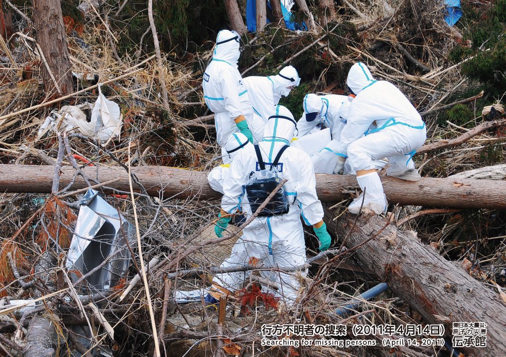 ・沿岸部での行方不明者捜索。撮影日は地震・津波発生の1カ月以上も後の2011年4月14日で、