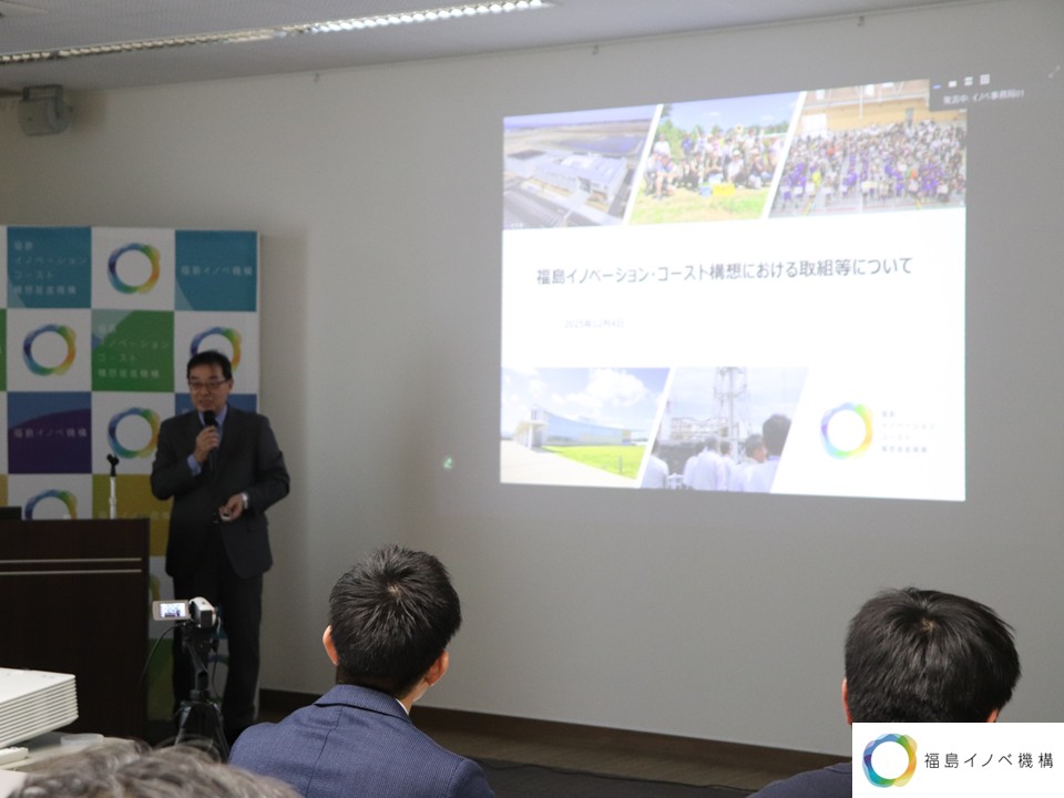 12月4日(木)に会津若松市アピオスペースにて「福島イノベ構想参画促進セミナーin会津若松」を開催いたしました。今回はイノベ関連企業による事例発表や福島国際教育研究機構(F-REI)による取組紹介の後、参加者・登壇者による交流が行われ、会場・オンラインを合わせて約80名の方にご参加いただきました。