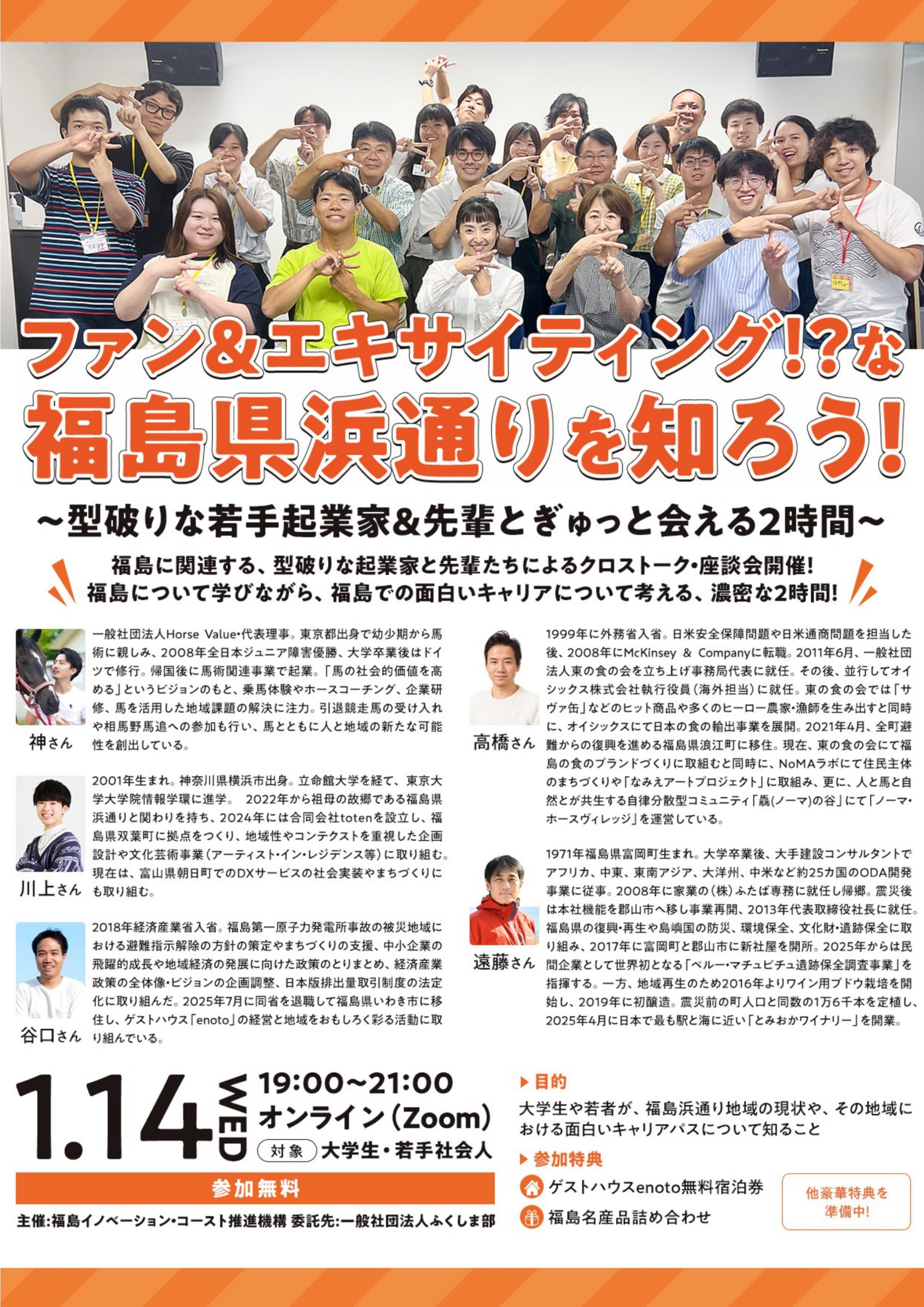 「ファン&エキサイティング!?な福島県浜通りを知ろう!~型破りな若手起業家&先輩とぎゅっと会える2時間~」